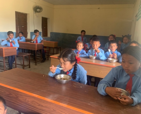 Dal 2015, ProNepal sostiene anche gli alunni della scuola di Saimarang, offrendo loro un pasto caldo quotidiano. Poiché le lezioni si svolgono dalle 9:00 alle 15:00 circa, un pasto a metà giornata non è solo gradito, ma per molti bambini è semplicemente indispensabile.